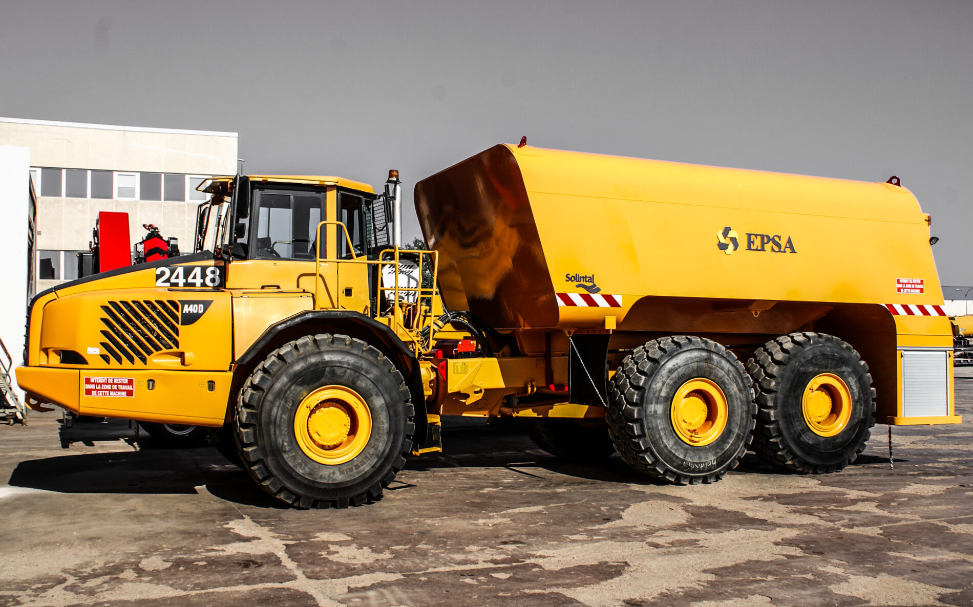 La última entrega han sido dos tanques para el transporte de gasoil de 40.000 litros cada uno, montados sobre dos dúmperes articulados Volvo A40D para la empresa multinacional de maquinaria de movimiento de tierras Epsa Internacional.